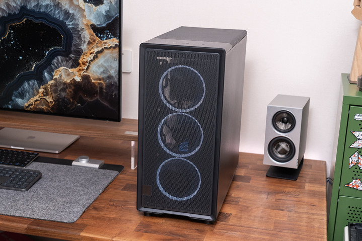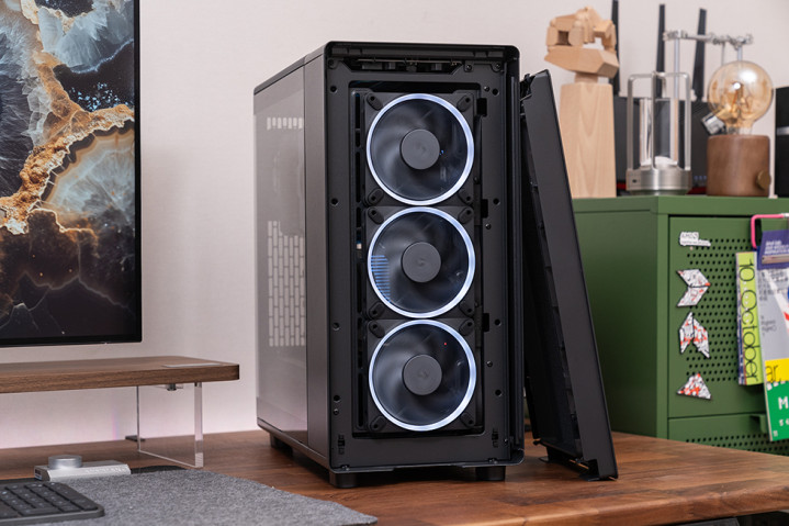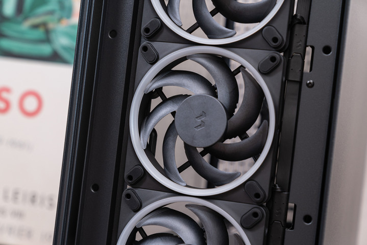 前面板和顶部的大面积网孔设计,使得空气能够顺畅地流入和流出机箱,有效避免了热量积聚。如果选择 RGB 版本,风扇的 RGB 光圈只是在扇框周遭一圈,不会影响风扇的效能,还能为机箱增添一些炫酷的灯光效果。