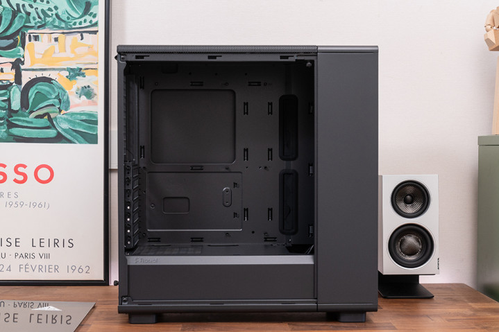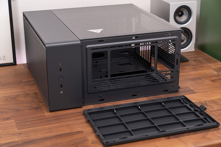 侧板、前面板和顶部面板都可以轻松拆卸,无需螺丝刀等工具,大大节省了装机时间。前板右下方配备激光雕刻的铝制 LOGO 铭牌,为机箱增添了一丝精致感。