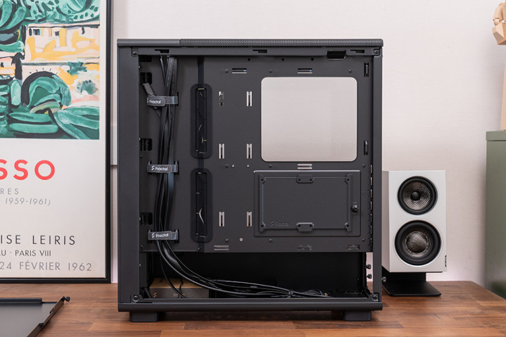 机箱背面设有合理的走线通道,并配备了固定扎带和橡胶圈,让装机者能够轻松整理线缆,保持机箱内部整洁,不仅提升了美观度,还有助于空气流通。