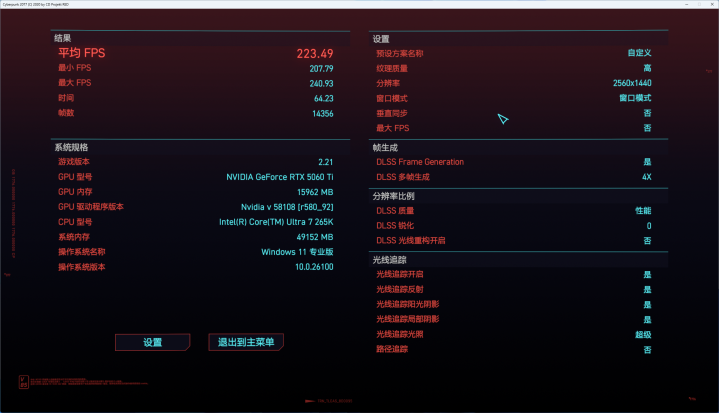 游戏测试:《赛博朋克2077》、《黑神话悟空》、《CS GO》三款游戏在2K分辨率下帧率表现。