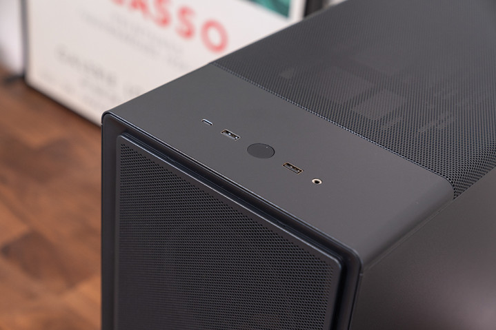 前置 I/O 面板位于顶部前方,配备了 1 个 20Gbps 的 USB Type-C 接口、2 个 5Gbps 的 USB Type-A 接口和一个音频 / 麦克风二合一插孔,方便用户连接外部设备。