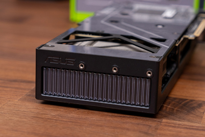 华硕ATS-RTX5060TI-O8G 显卡尾端设计了类似长虹玻璃的灯板,通电后呈现霓虹光栅效果,支持 ARGB 主板调控。
