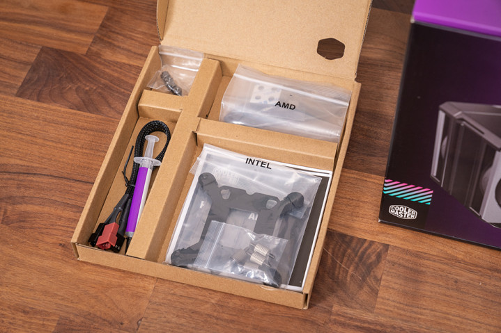 附带扣具采用独立包装,支持intel的LGA2066/2011v3/2011/1700/1200/1151/1150/1155和AMD的AM4/AM5平台,同时附送一条风扇一分二PWM线和一支2g装Cryofuze导热硅脂。